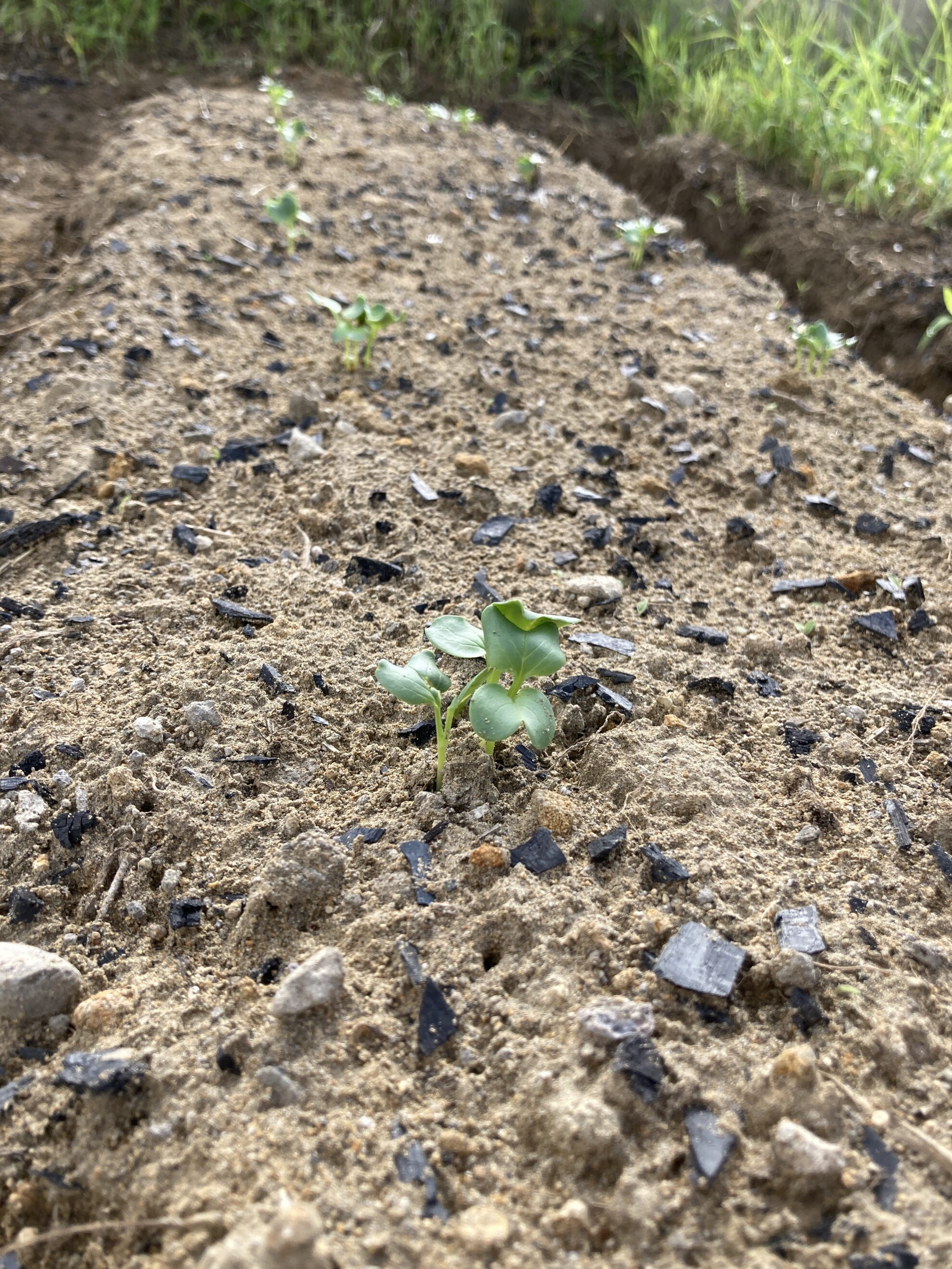 【5日目】順調に双葉が伸びるアグリ部 2021.08.27今朝もダイコン、ハクサイ、小松菜はすくすくと伸びています。撒いた種の数と同じぐらい芽が出ているようなので、ここまでは順調な様子☺️ 相変わらずニンジンの畝三つは変化なし。もしや種まきを忘れたか?と心配になって来ます笑炭入り畝のダイコンの芽学校で習ったいわゆる双葉というやつでしょうか😅芽に集まるチョウチョ🦋昨日もそうでしたが、モンシロチョウのような蝶が飛んできて芽の何かを吸っている様子が観察できます。こうやって離れた畑からいろんな害虫や菌が運ばれてくるんだろうなあという予想をしています😅