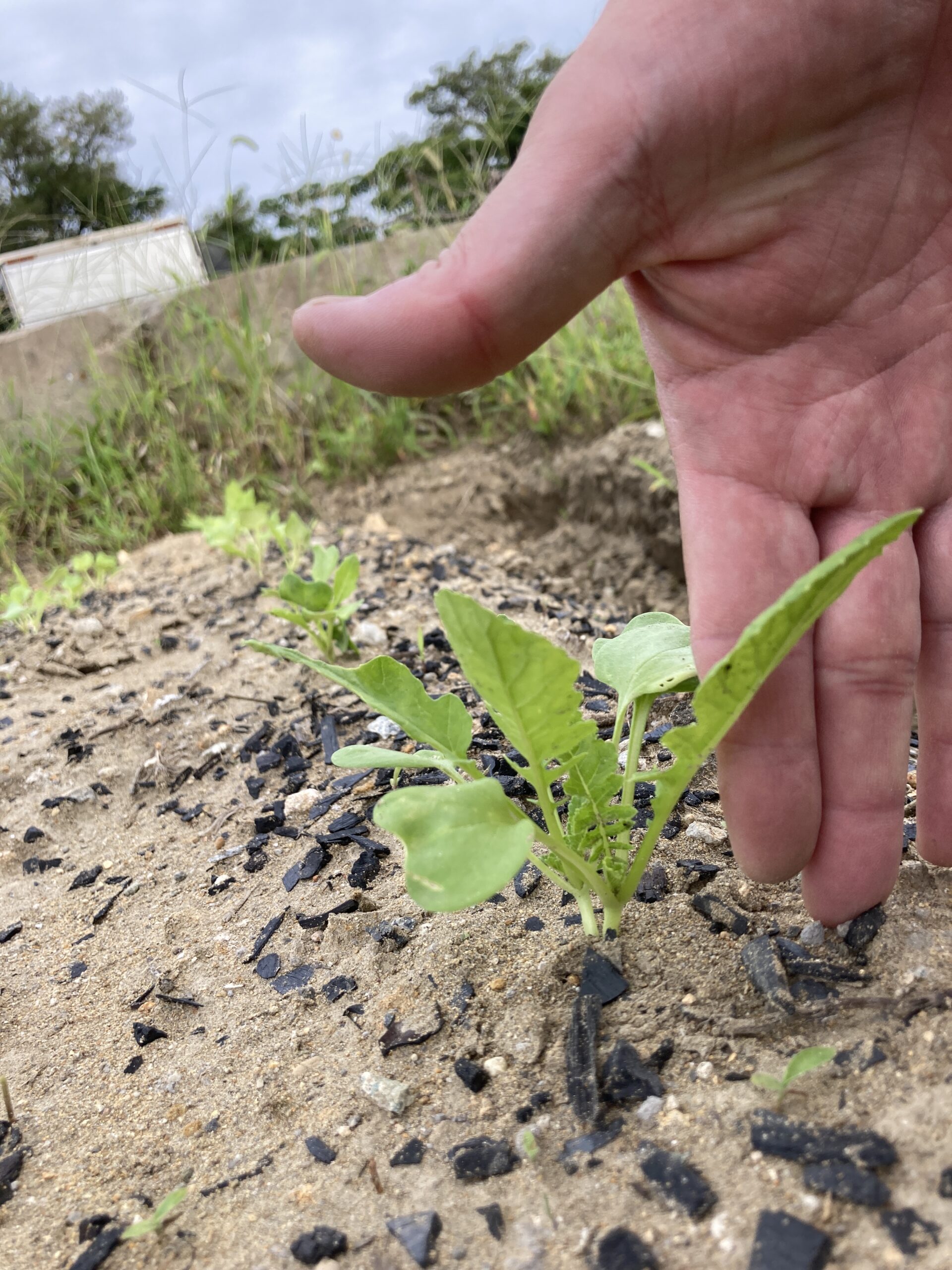 【16日目】二回目の間引きアグリ部 2021.09.07昨日雨により中断した間引きの続きを行いました。虫に食われ無残な株や無傷の株がある中、とりあえず数を減らしてみました。どれを残すべきか迷うようなものもありつつとりあえずマシなものを残す今日はこの作業で終了とします😅2本ずつに残したダイコンの株だいぶ大きくなってきました小松菜小さいながらも葉っぱが分かれてきたニンジン🥕