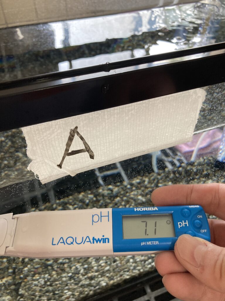 pHはどうでしょうか。初日は7.2であった水槽の水は4日間でどうなっているでしょうか。
