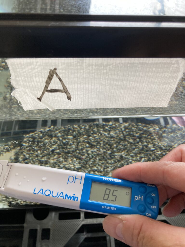 両方とも8.5へ上昇しています。これは恐らく砂利から滲み出たカルシウムがpHを上げているのではないかと予想します。たった4日間でも数値として現れるんですね。意外と砂利の影響は侮れないなという感じです😅